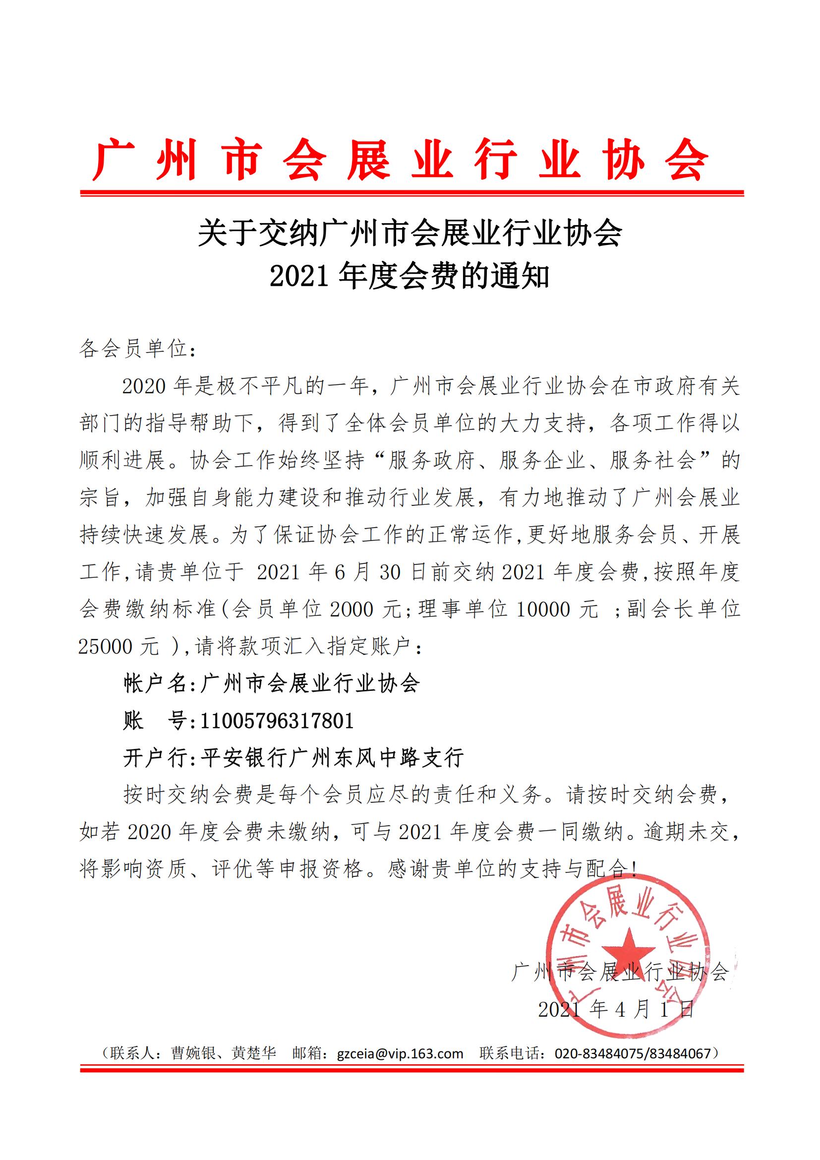 附件:关于交纳广州市会展业行业协会2021年度会费的通知