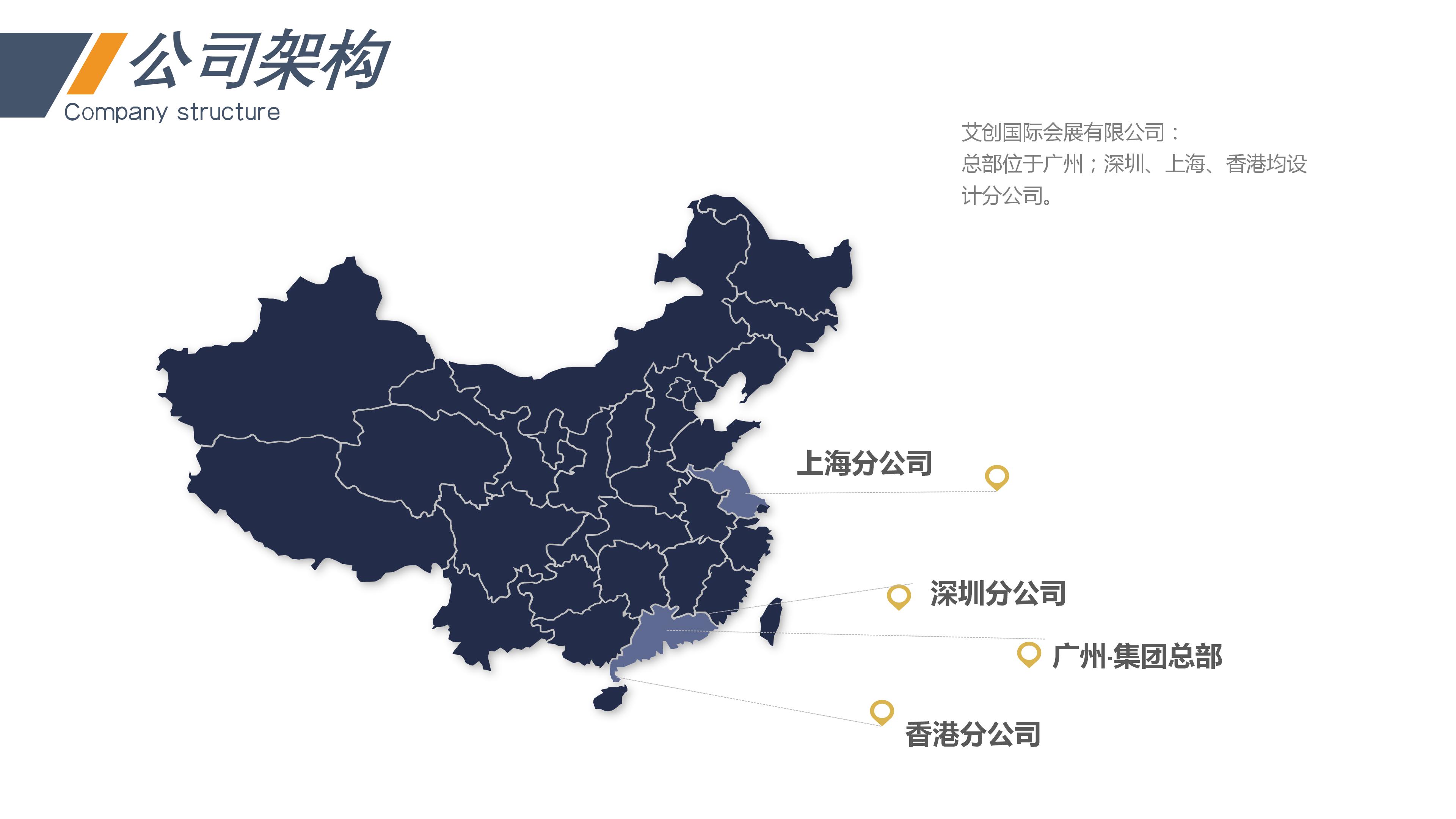 艾创国际会展集团有限公司成立于2006年,是中国进出口商品交易会(广交会)资质认证单位,总公司位于广州CBD商务中心区的保利世界贸易中心,扎根于广交会展馆腹地,地理位置优越,服务展会便利。在上海、香港、深圳均设有分公司,旨在为海内外客户提供专业、高品质的会议设计与搭建、活动策划等一站式服务。
