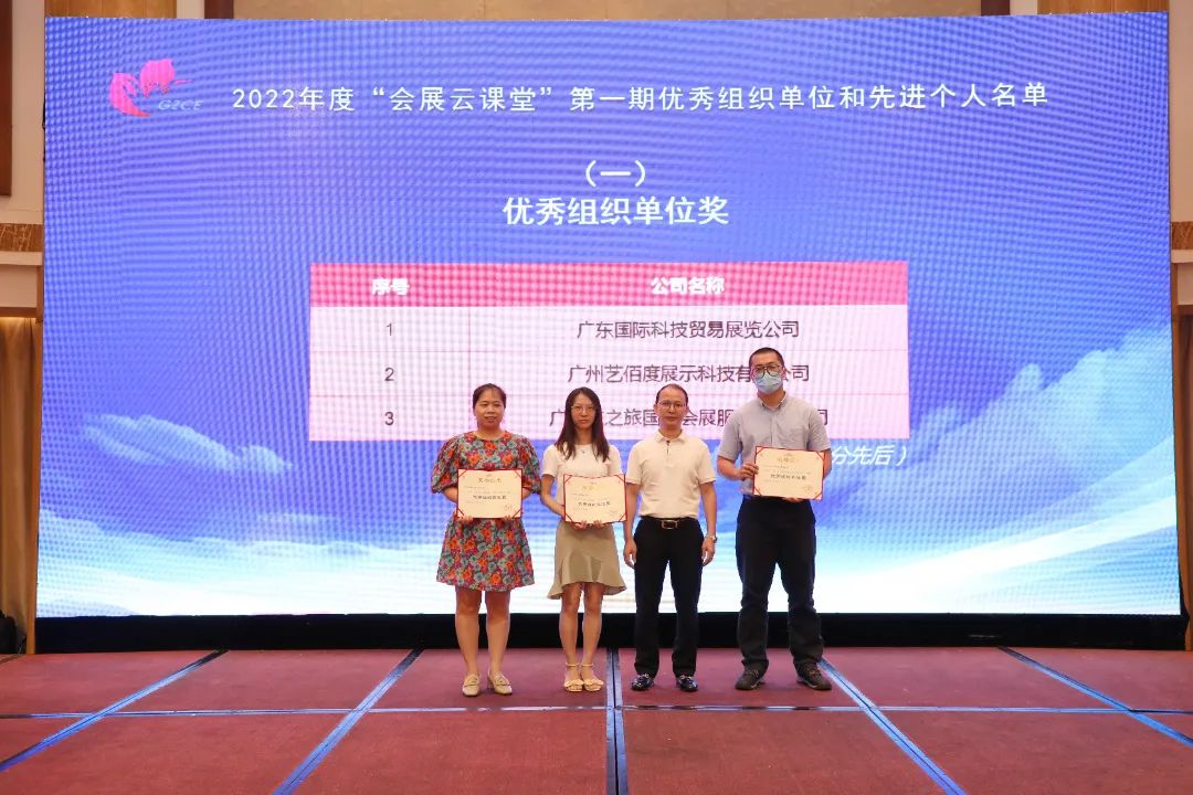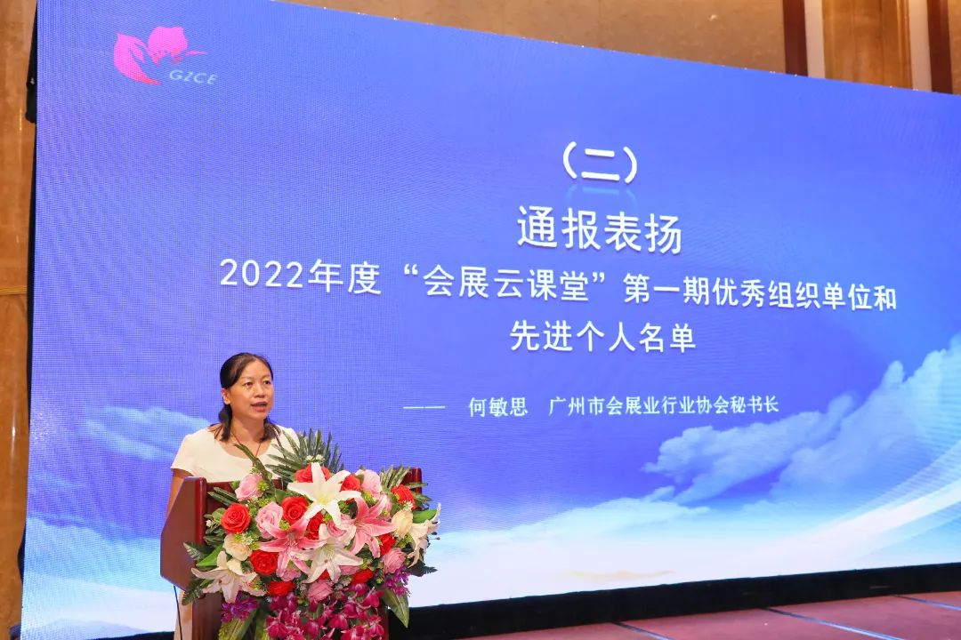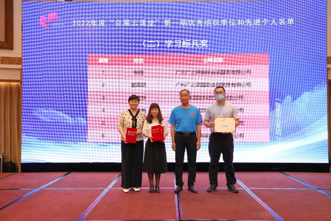 接着协会秘书长何敏思对“会展云课堂”第一期培训班的优秀组织单位和先进个人进行了表扬通报。会上对获得“优秀组织单位奖”、“学习标兵奖”进行了颁奖。