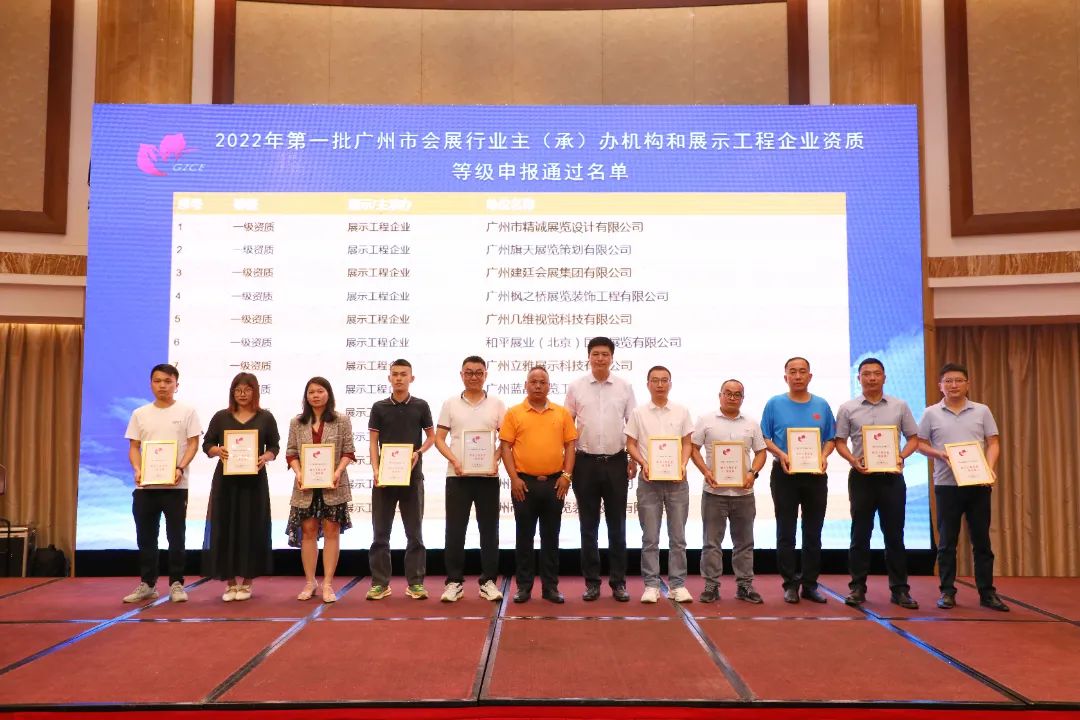会上为获得2022年第一批广州市会展行业主(承)办机构和展示工程企业资质等级申报通过的单位颁发了资质牌匾。