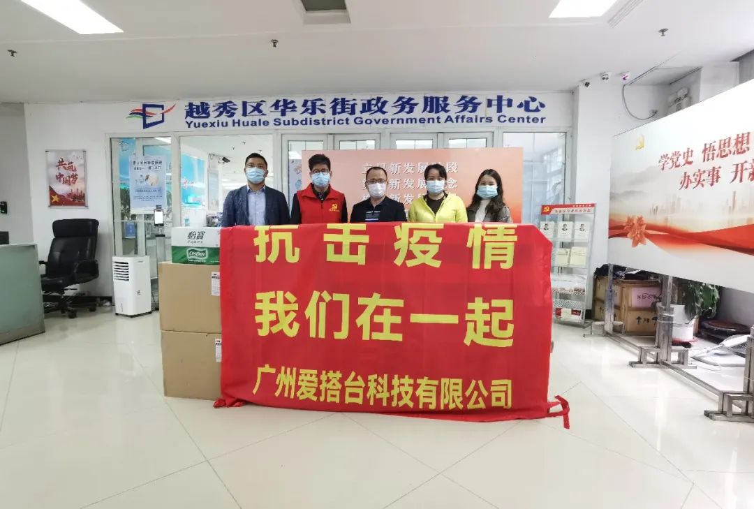 2022年4月15日爱搭台/旗天展览公司向越秀区慈善会捐赠现金二万元,用于越秀区的疫情防控!抗击疫情,我们在一起!2022年4月18日上午,广州市越秀区政协委员、广州市爱搭台科技有限公司董事长、广州旗天展览策划有限公司董事长钟志华先生,率总经理钟宝山先生及综合部梁美群经理,向广州市越秀区华乐街道捐献口罩、矿泉水,防护服以及消毒液等价值二万元防疫物资,以支持广州市越秀区华乐街道疫情防控工作。街道办事处谭主任,梁书记代表华乐街接收捐献并向钟志华委员,爱心企业表示诚挚感谢!越秀越美,我们同舟共济!爱搭台/旗天展览捐献物资支援疫情防控工作,温暖慰问一线工作人员,缓解战“疫”前线相关物资紧缺问题,关心,支持防控工作!在共同鼓励下,让彼此充满力量。