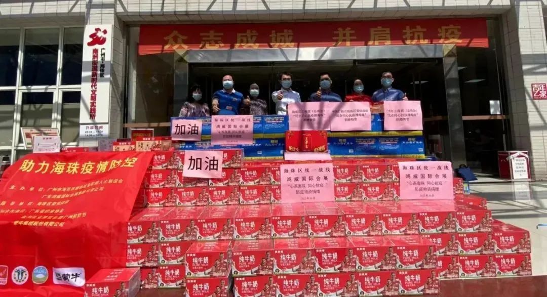 鸿威集团捐赠燕塘牛奶200箱,及时为基层补充防疫急需物资,为疫情防控和群众生活提供物资保障,用实际行动构筑海珠区疫情防控“同心”防线,为打赢疫情防控硬仗、守护好人民群众生命健康和城市安全稳定大局贡献力量。海珠区委常委、统战部部长王福军代表海珠区委、区委统战部向广东省奶业协会及其会员企业、鸿威集团对海珠区疫情防控工作及时迅速的支援表示感谢。