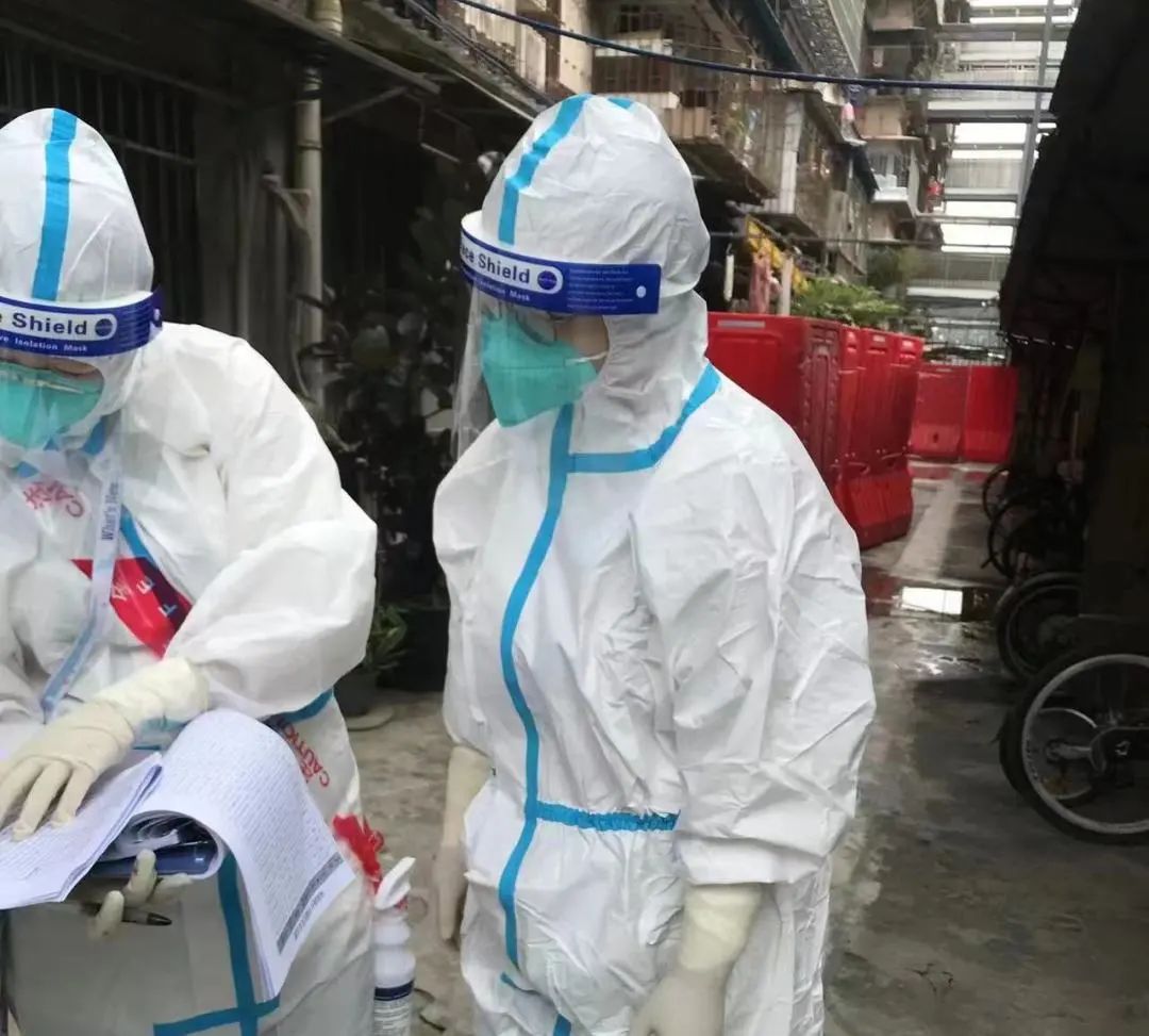 “每天耳边听到最多的是街坊们亲切的称呼我为‘靓女’‘靓姐’,甚至小朋友都跟我说‘靓医生,辛苦了’,虽然汗流浃背有些辛苦,但还是被邻里间的温暖善良感动到热泪盈眶。”—— 集团财务管理中心潘丽红
