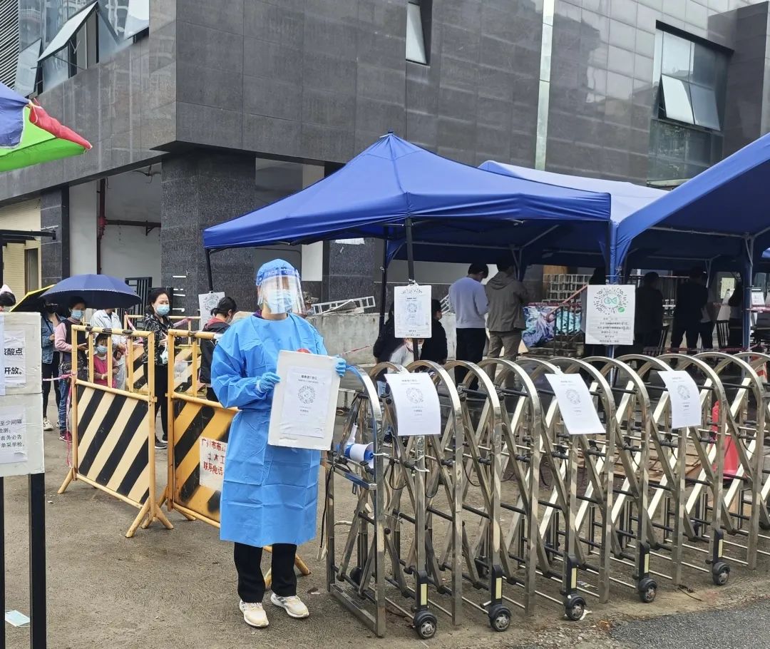 “当时没多想便加入队伍,参与到协助医护人员对核酸和抗原异常的同楼宇居民的复核工作中。作为一名党员,希望能通过自己的力量早一点切断传播链条,守护街坊邻里的平安健康。”—— 广州友谊党群工作部张敏斯