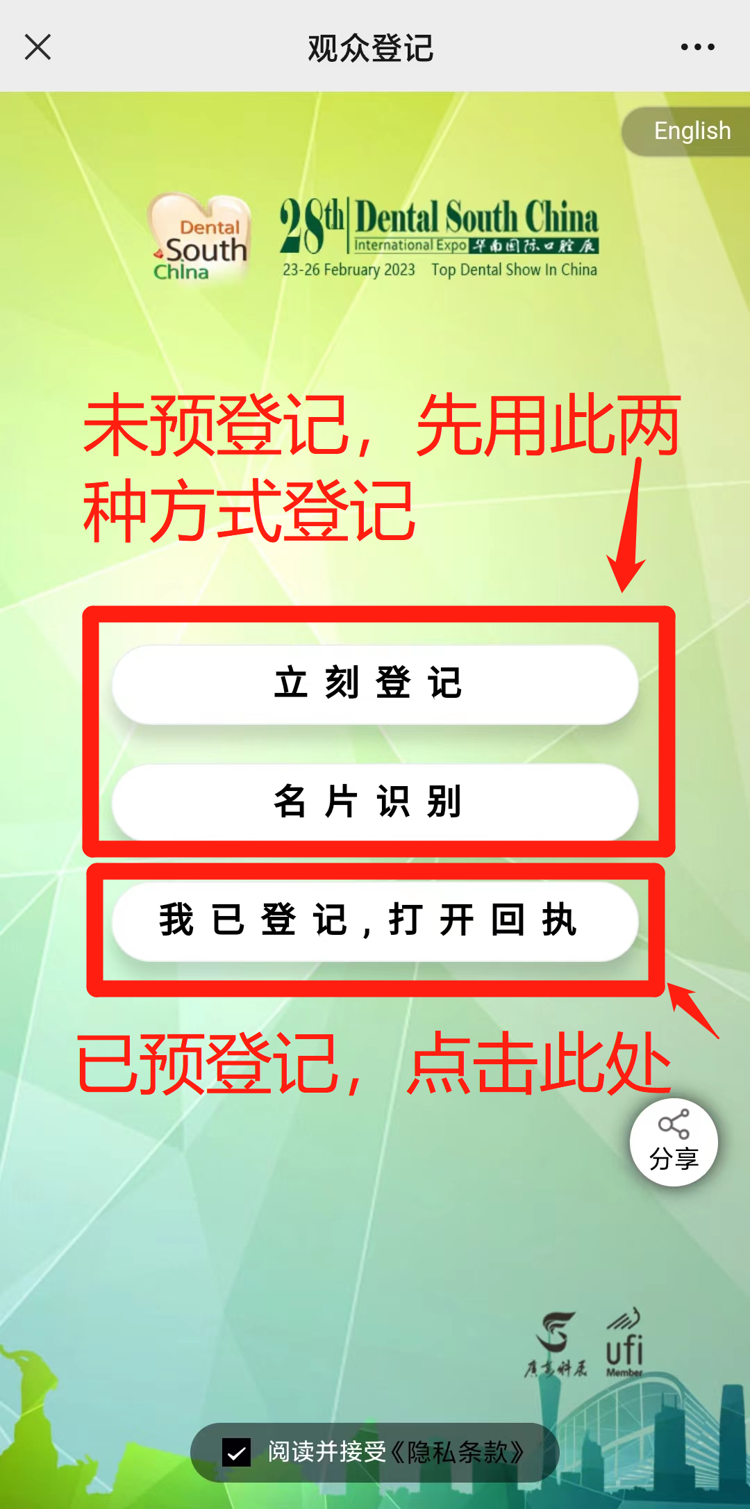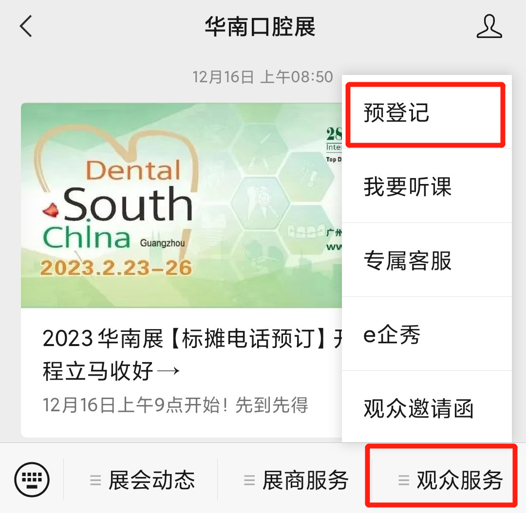 ☑ 前188名成功进行微信预登记的专业观众,可获得2023华南展听课证A一张。