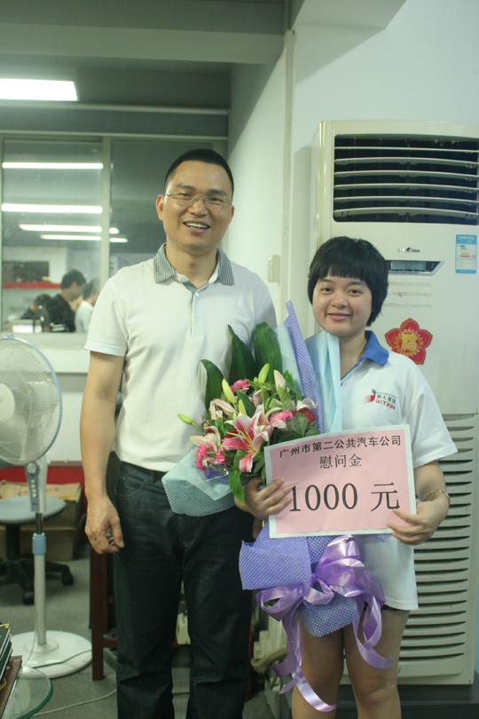 广州二汽的李总,对于“最美乘客”曾丽雯的热心助人,甚是感动,前来广州旗天展览策划有限公司进行慰问。广州日报、南方都市报、信息时报。广东卫视、南方电台等媒体也对这位“最美乘客“进行了采访。