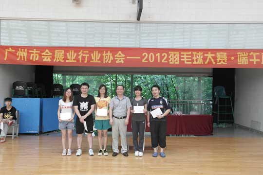 2012年6月24日,“激情绽放,‘羽’您共享”—“2012端午杯•羽毛球大赛”正式在广州体育馆“开波”。经过一个上午的激战角逐,冠亚季军快乐诞生。这场由广州市会展业行业协会首次主办的赛事,获得了相关单位的鼎力赞助与支持,同时受到了各会员单位的热烈报名参与。