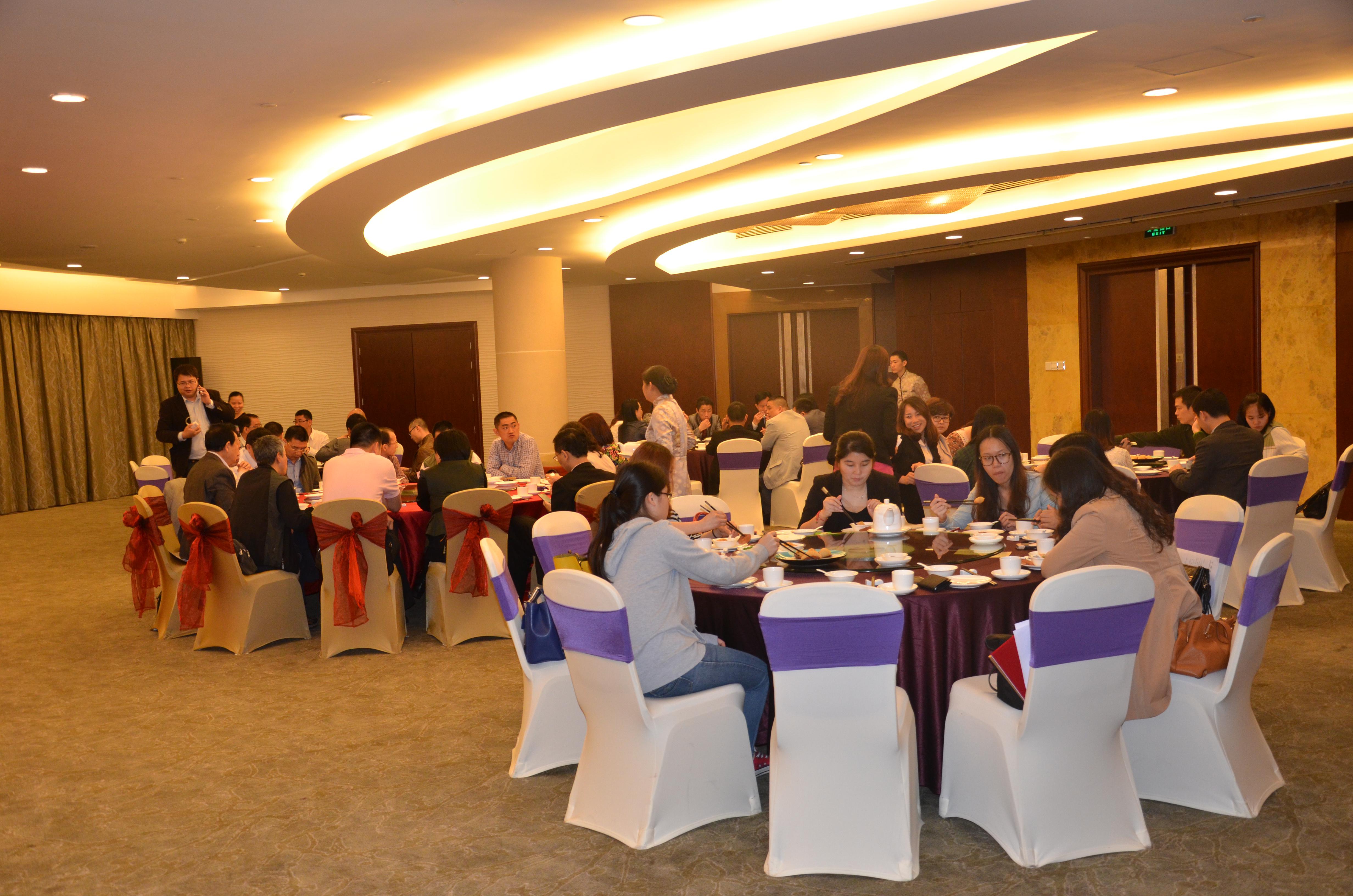2014年4月2日星期三上午9点由广州市会展业行业协会组织的理事早茶联谊会在黄埔大道西路云来斯堡酒店三楼鸿云厅举行。这次早茶会由广州搏毅展览有限公司做东,会展协会李霞辉会长主持,38家公司的领导及代表共50余人参加,大家在热情的氛围中相谈交流。
