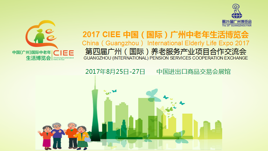 CIEE 2017中国(广州)国际中老年生活博览会是由广州市人民政府指导,广州博览会组委会办公室、广东省服务贸易协会、广东省养老服务业商会、广东省居家养老服务协会、广东亚太电子商务研究院、广州养老服务产业协会主办,广东跨采展览有限公司承办,多家养老相关机构和商协会支持下主办的国际性专业展会。展会响应国家养老服务产业政策,致力于打造中老年产业的行业风向标,汇聚全球最前沿的养老服务产品技术以及解决方案,引领中老年产业发展新未来,打造集展示、交流、服务、商机采购的一站式国际商贸平台。