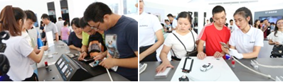 在现场S7功能体验区,体验者在IP68防水体验区尝试“捞鱼”互动,并对S7的拍摄功能表示称赞! 快速对焦及暗光拍摄功能体验区同样倍受青睐。